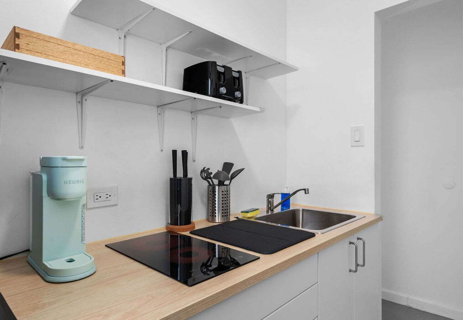 Your space is fully stocked with everything you need to feel at home: toiletries, fresh towels, tea, coffee pods, and local snacks. The kitchen is ready with utensils, pots, pans, a coffee maker, and essential appliances, plus dining basics like plates, cutlery, and glassware.