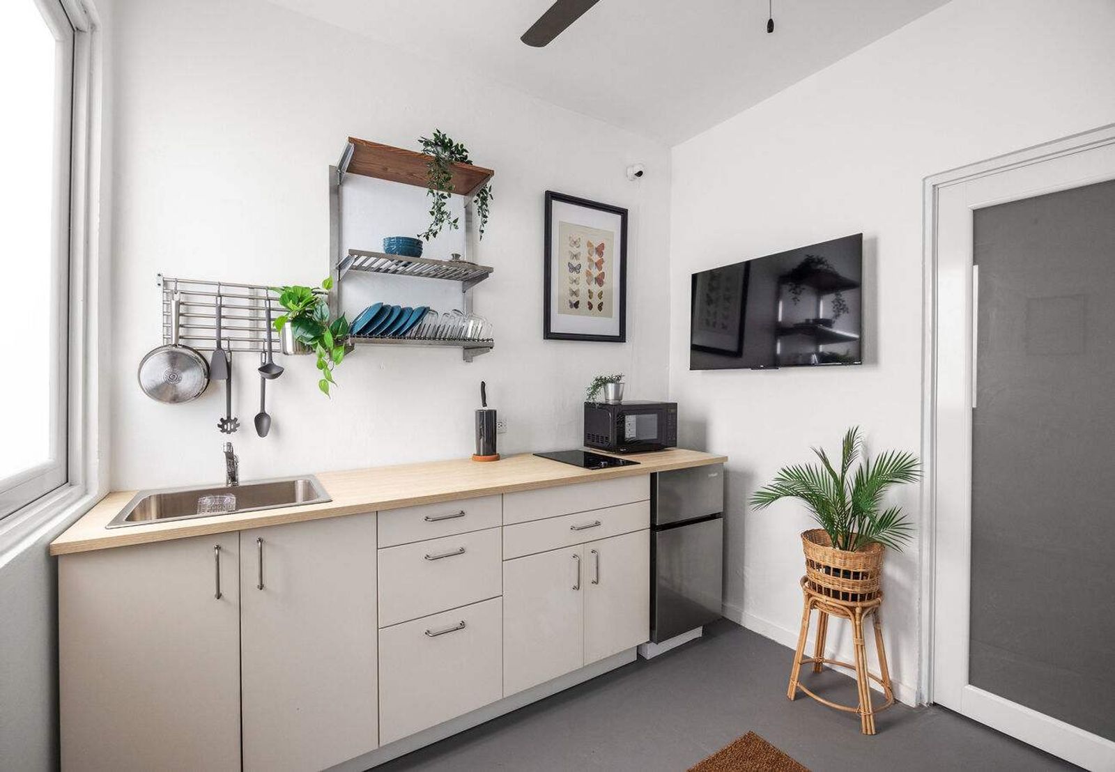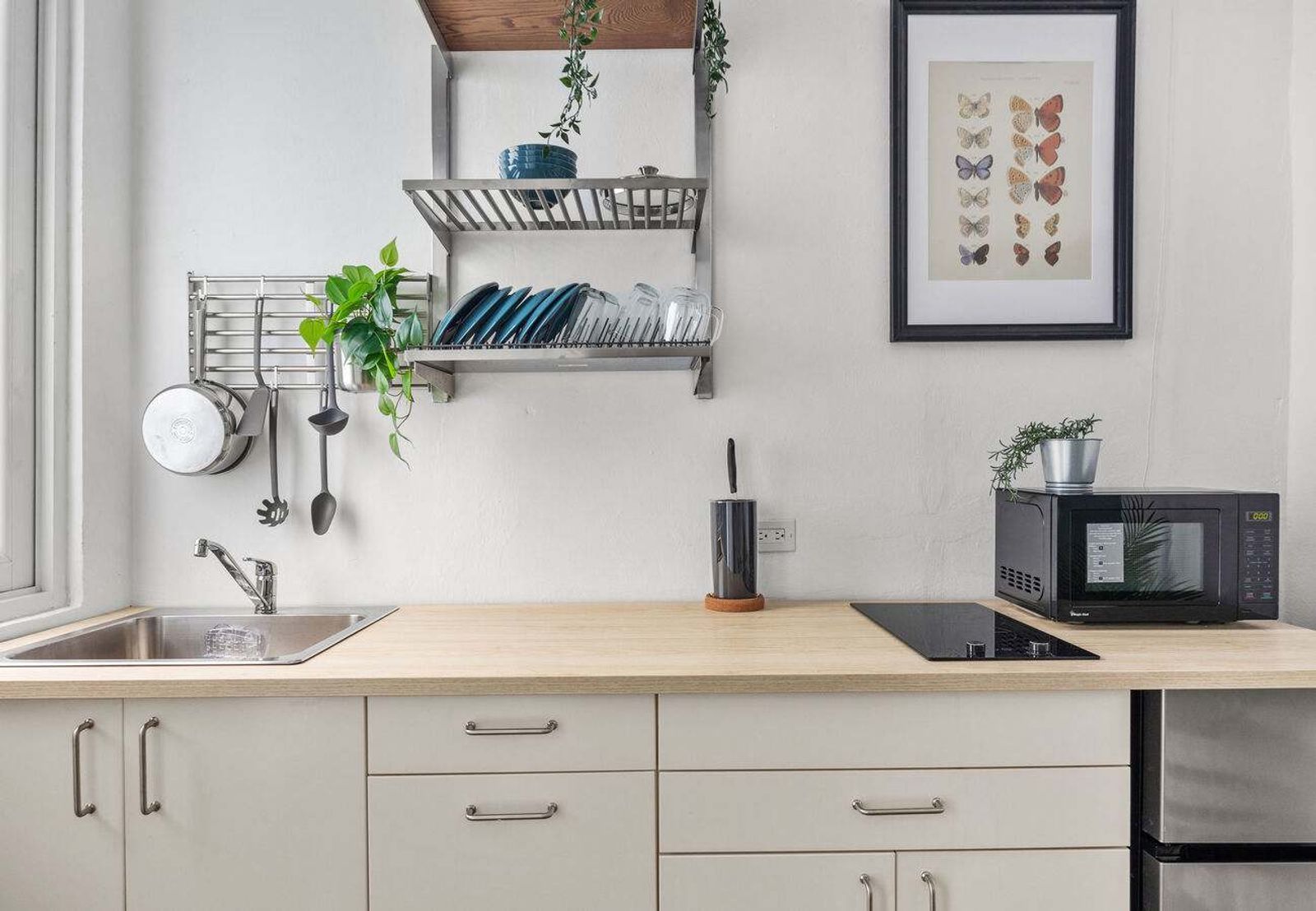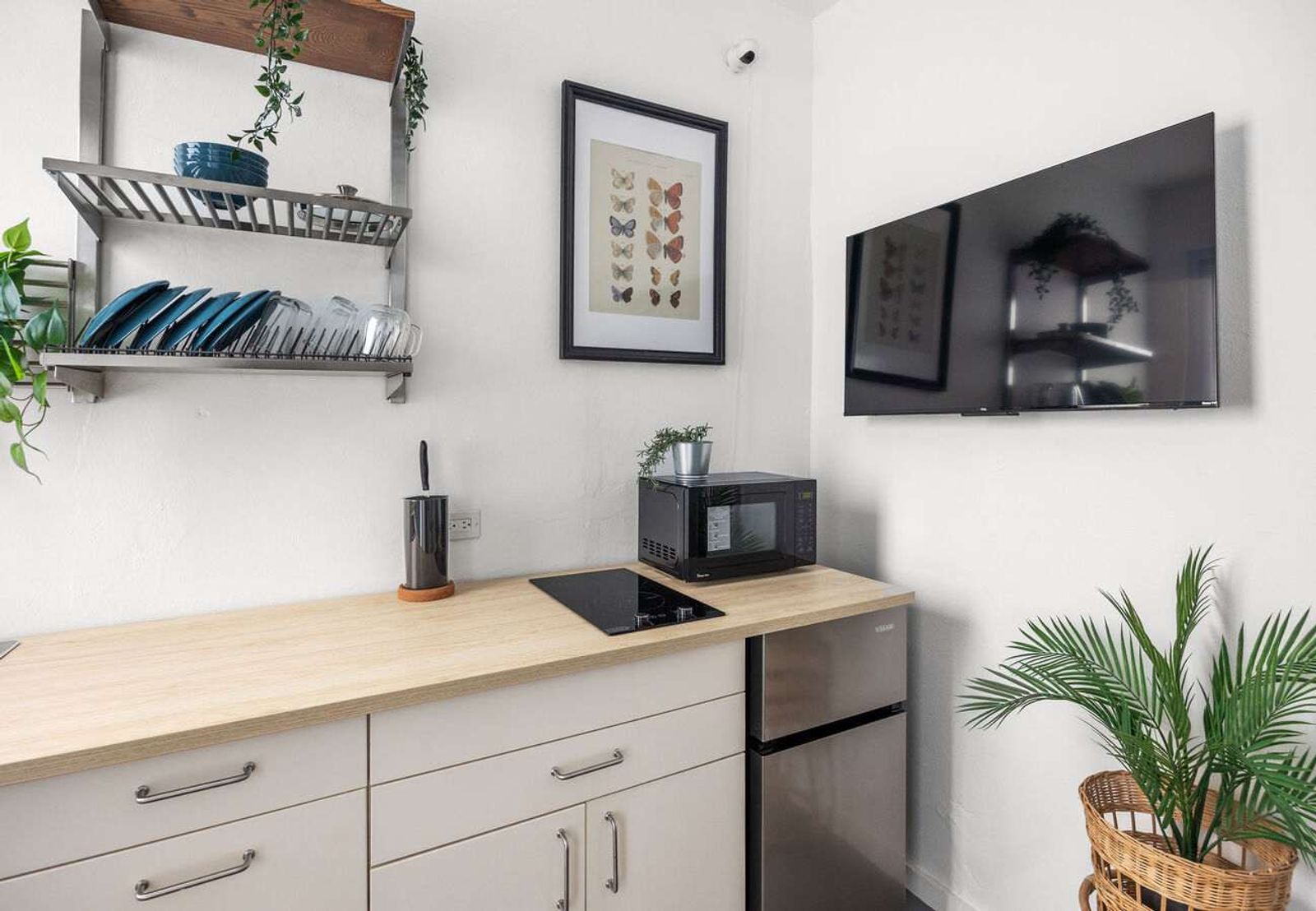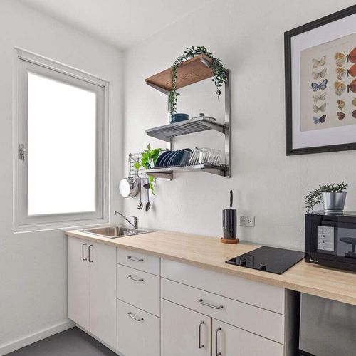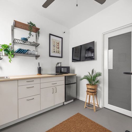Your space is fully stocked with everything you need to feel at home: toiletries, fresh towels, tea, coffee pods, and local snacks. The kitchen is ready with utensils, pots, pans, a coffee maker, and essential appliances, plus dining basics like plates, cutlery, and glassware.