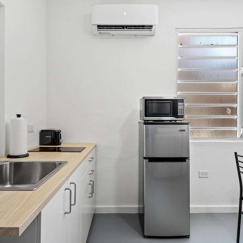 Sensibo air units have been installed on the premises. Please refrain from disconnecting these devices, as they are specifically designed for remote control of the air conditioning and humidity management. The small white/black devices are strategically placed near the kitchen, bedrooms, and close to the mini-split A/C unit for optimal functionality.