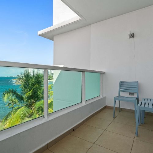 The living area is cozy and functional, with a relaxing vibe perfect for unwinding after a day of exploring. Plus, the private balcony with ocean views is the star of this space. Whether you're sipping coffee in the morning or watching the sunset in the evening, it’s the ideal place to relax and take in the beauty of San Juan.