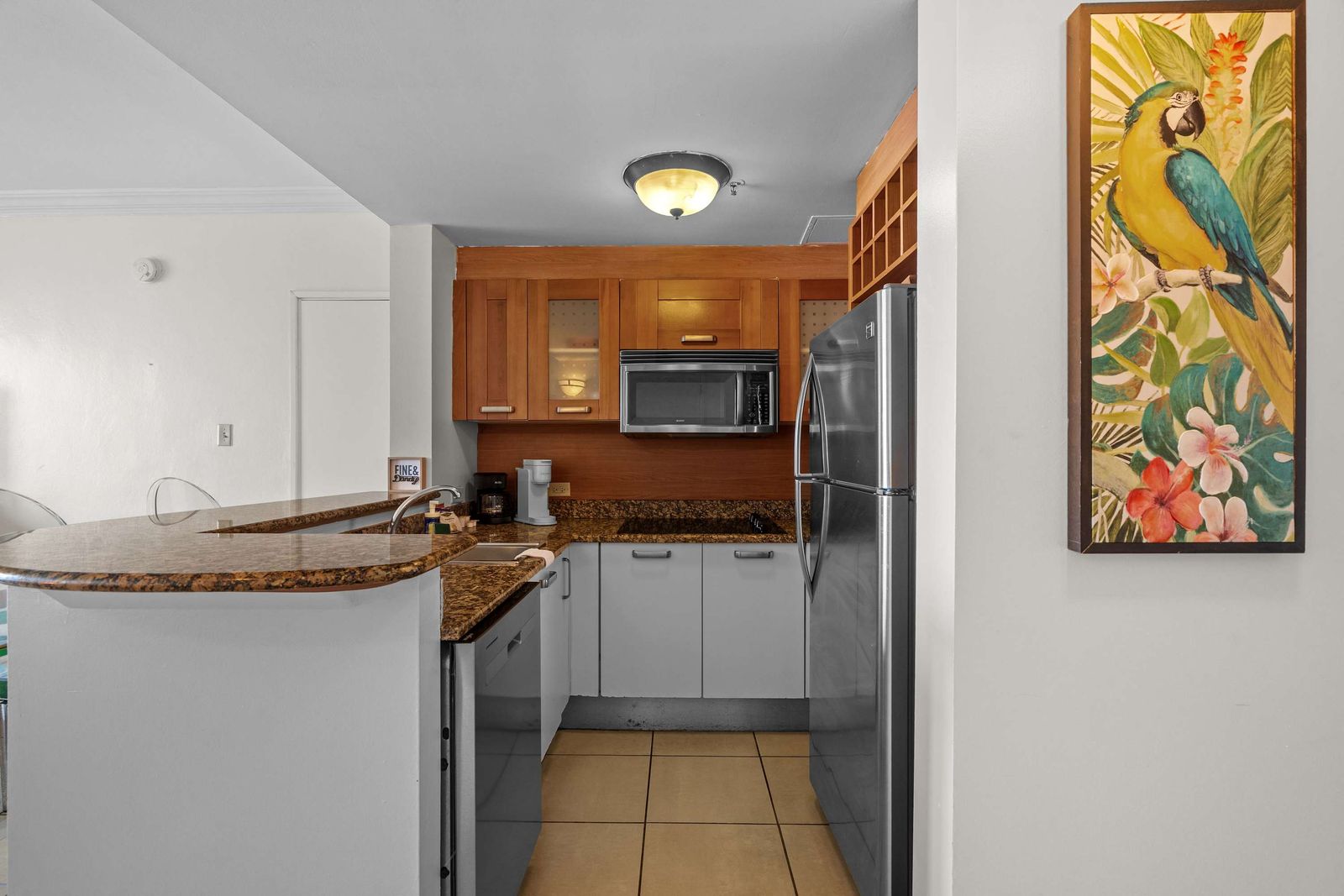 You'll love the fully equipped kitchen, where you can whip up meals with ease. From the coffee maker for your morning pick-me-up to the stove, fridge, and microwave, everything you need is at your fingertips.