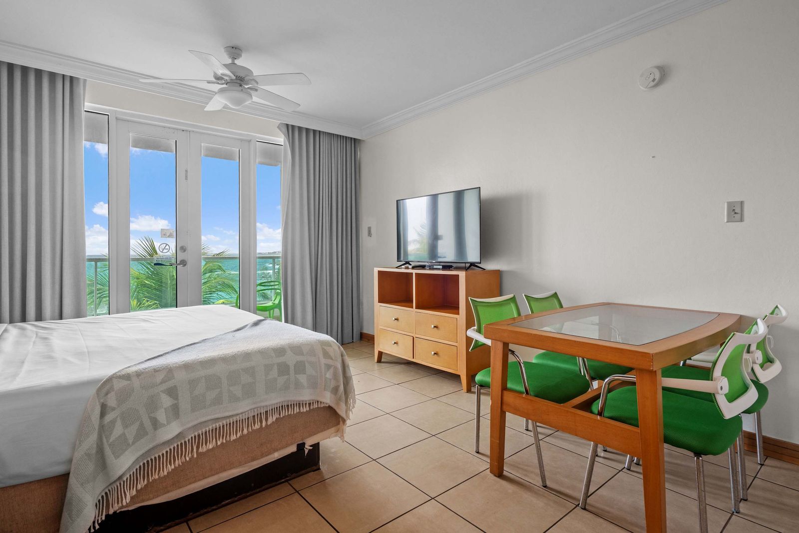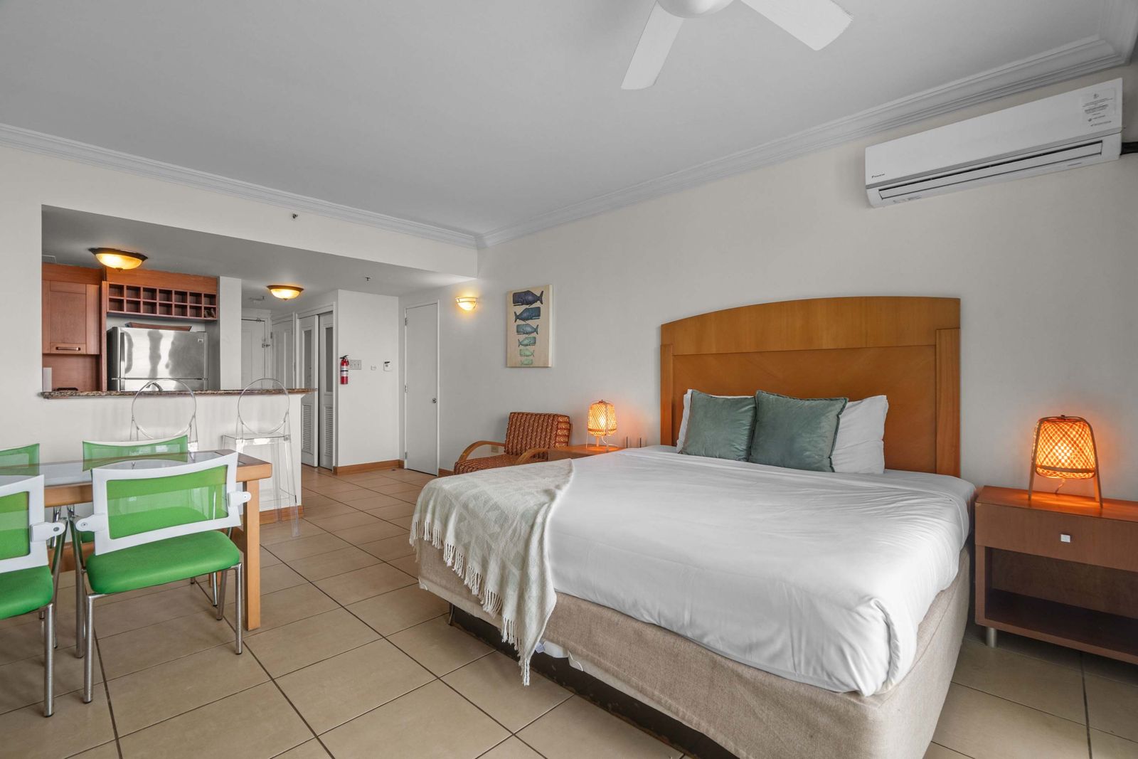 The living area is cozy and functional, with a relaxing vibe perfect for unwinding after a day of exploring. Plus, the private balcony with ocean views is the star of this space. Whether you're sipping coffee in the morning or watching the sunset in the evening, it’s the ideal place to relax and take in the beauty of San Juan.
