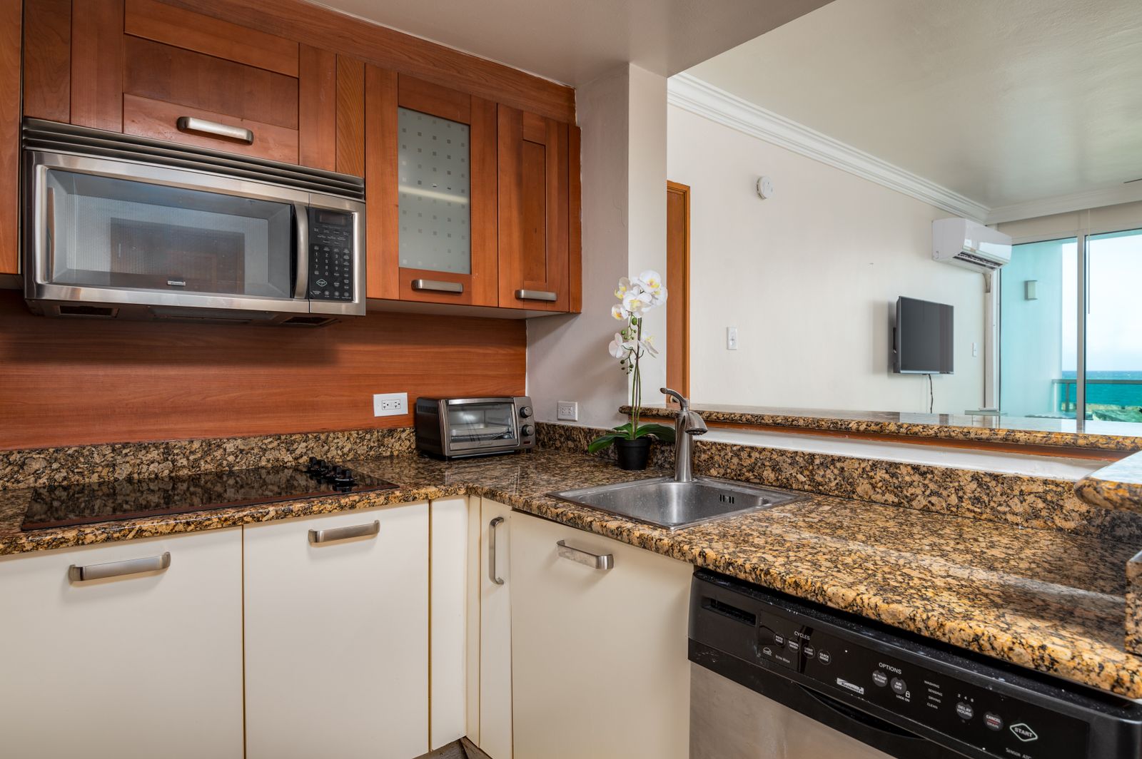 The living area is cozy and functional, with a relaxing vibe perfect for unwinding after a day of exploring. Plus, the private balcony with ocean views is the star of this space. Whether you're sipping coffee in the morning or watching the sunset in the evening, it’s the ideal place to relax and take in the beauty of San Juan.