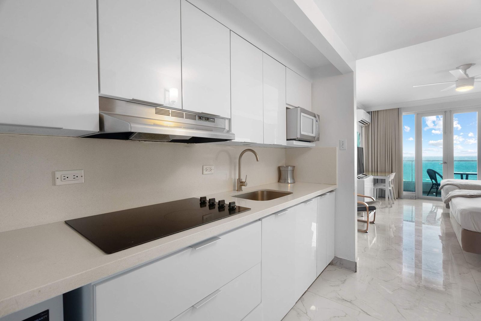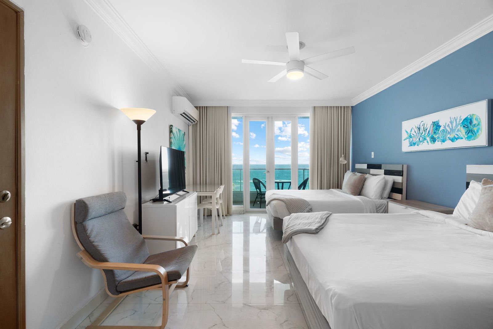 The living area is cozy and functional, with a relaxing vibe perfect for unwinding after a day of exploring. Plus, the private balcony with ocean views is the star of this space. Whether you're sipping coffee in the morning or watching the sunset in the evening, it’s the ideal place to relax and take in the beauty of San Juan.