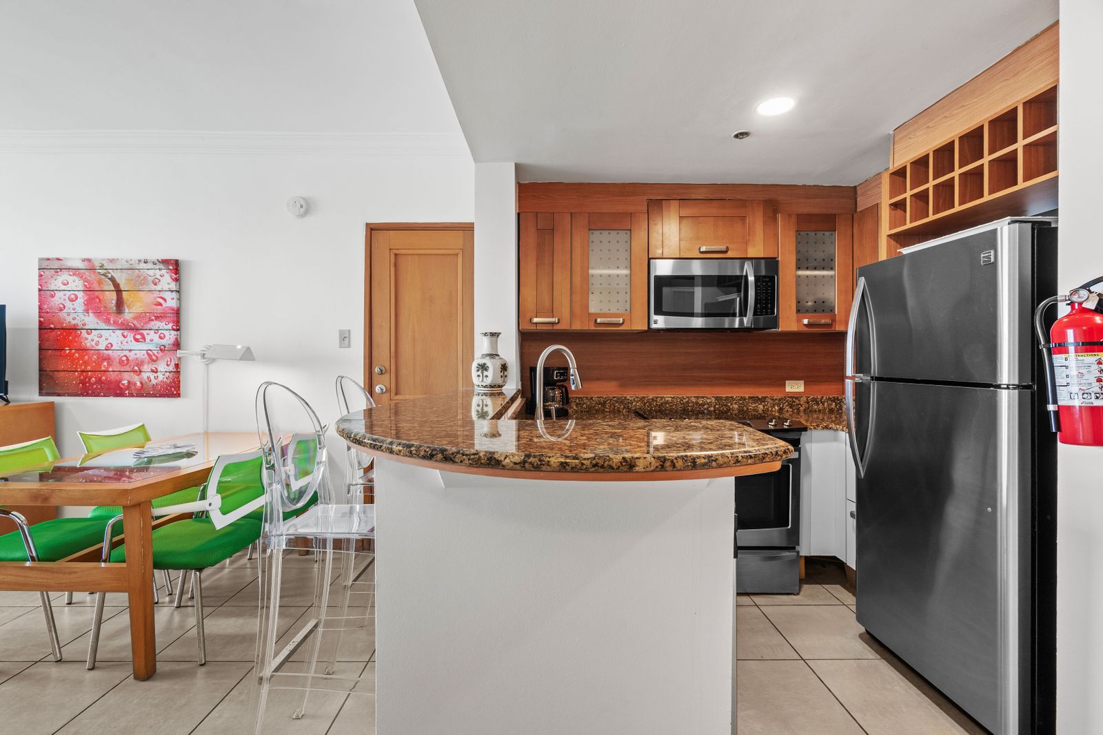 The living area is cozy and functional, with a relaxing vibe perfect for unwinding after a day of exploring. Plus, the private balcony with ocean views is the star of this space. Whether you're sipping coffee in the morning or watching the sunset in the evening, it’s the ideal place to relax and take in the beauty of San Juan.