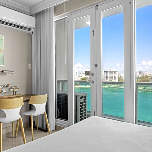 The living area is cozy and functional, with a relaxing vibe perfect for unwinding after a day of exploring. Plus, the private balcony with ocean views is the star of this space. Whether you're sipping coffee in the morning or watching the sunset in the evening, it’s the ideal place to relax and take in the beauty of San Juan.