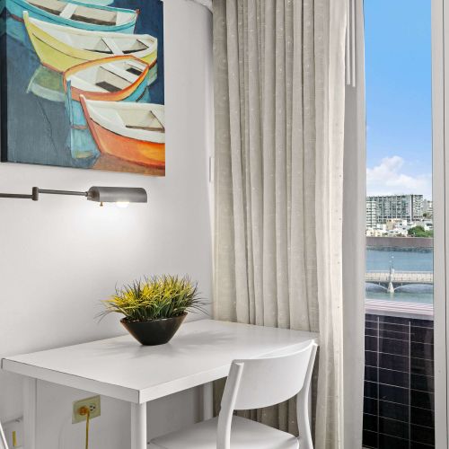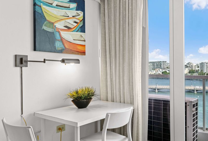 The living area is cozy and functional, with a relaxing vibe perfect for unwinding after a day of exploring. Plus, the private balcony with ocean views is the star of this space. Whether you're sipping coffee in the morning or watching the sunset in the evening, it’s the ideal place to relax and take in the beauty of San Juan.