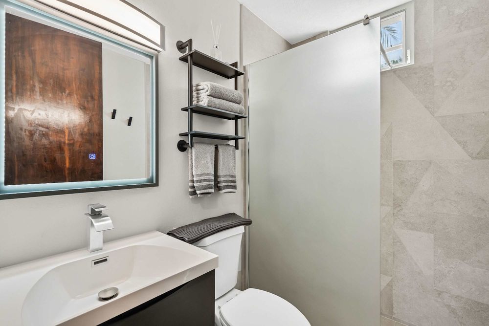 🚿 Spa-like Bathroom: Modern vanity, luxury finishes, and a rainfall-style shower experience.