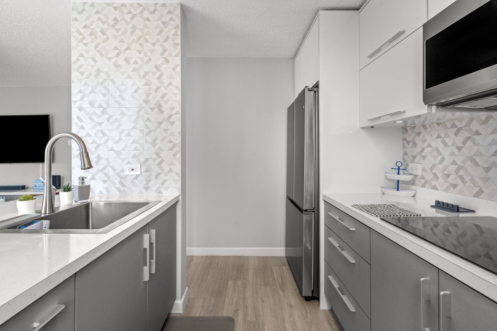 -A fully equipped kitchen with modern appliances, perfect for preparing your favorite meals and enjoying them with a view at the dining table.