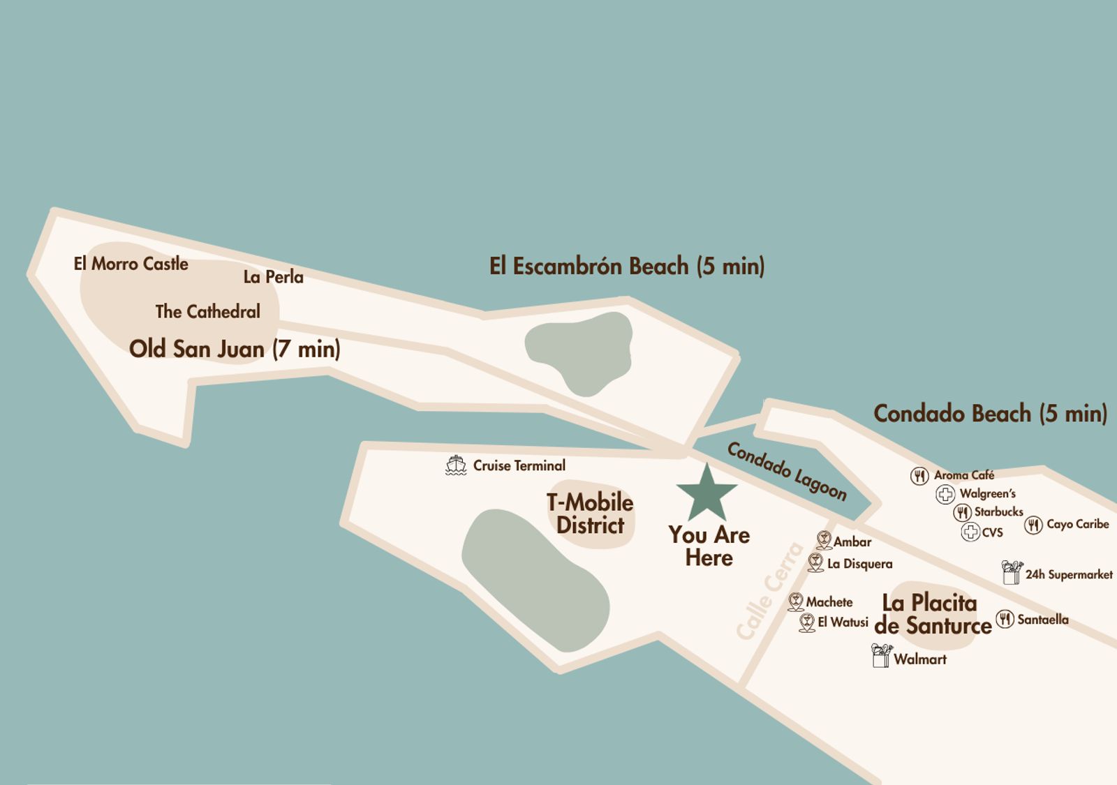 🗺️ Prime placement near the seashore, Historic San Juan, La Placita market, and top-tier dining spots