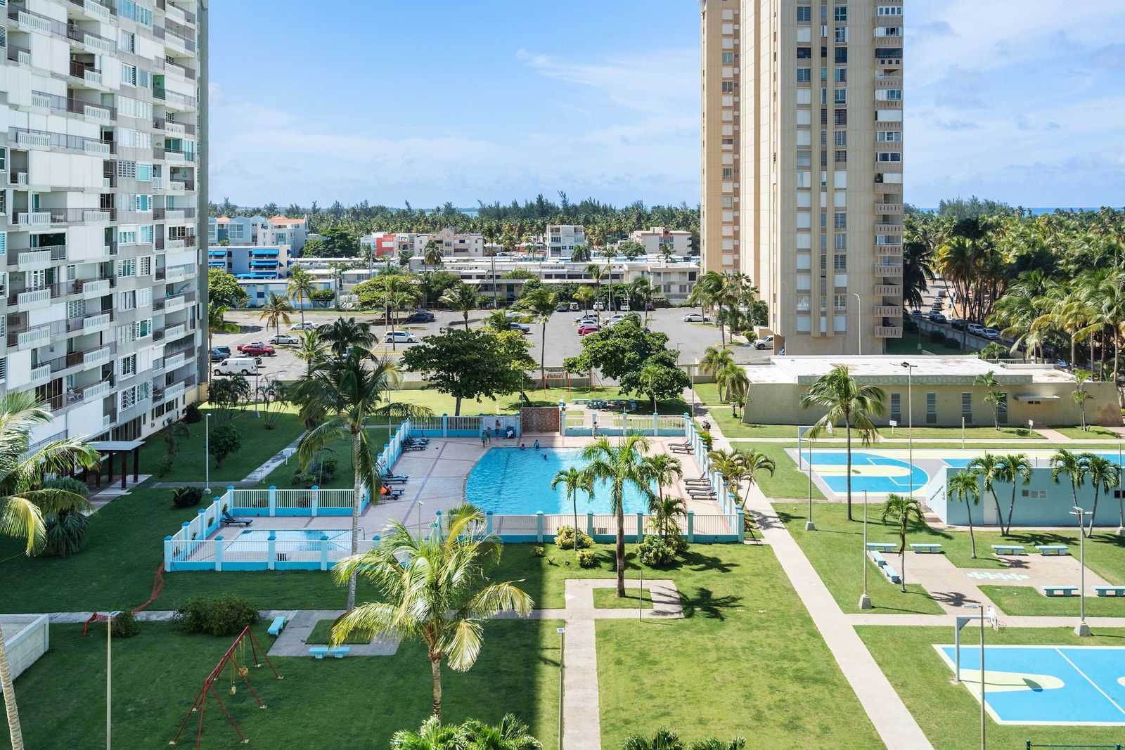 🏀 Resort Amenities: Access to a large swimming pool, basketball courts, and gated parking.